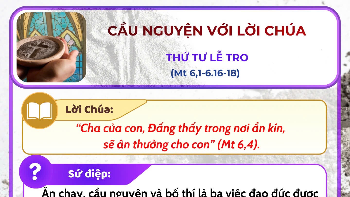Sứ điệp Mùa Chay 2026: Lắng nghe và Ăn chay - Mùa Chay là thời gian hoán cải Đức Thánh Cha đã công bố sứ điệp Mùa Chay 2026, khuyến khích mỗi Kitô hữu hoán cải, trong đó ngài nêu bật ba con đường cụ thể là “lắng nghe”, “ăn chay” và “cùng nhau”.
