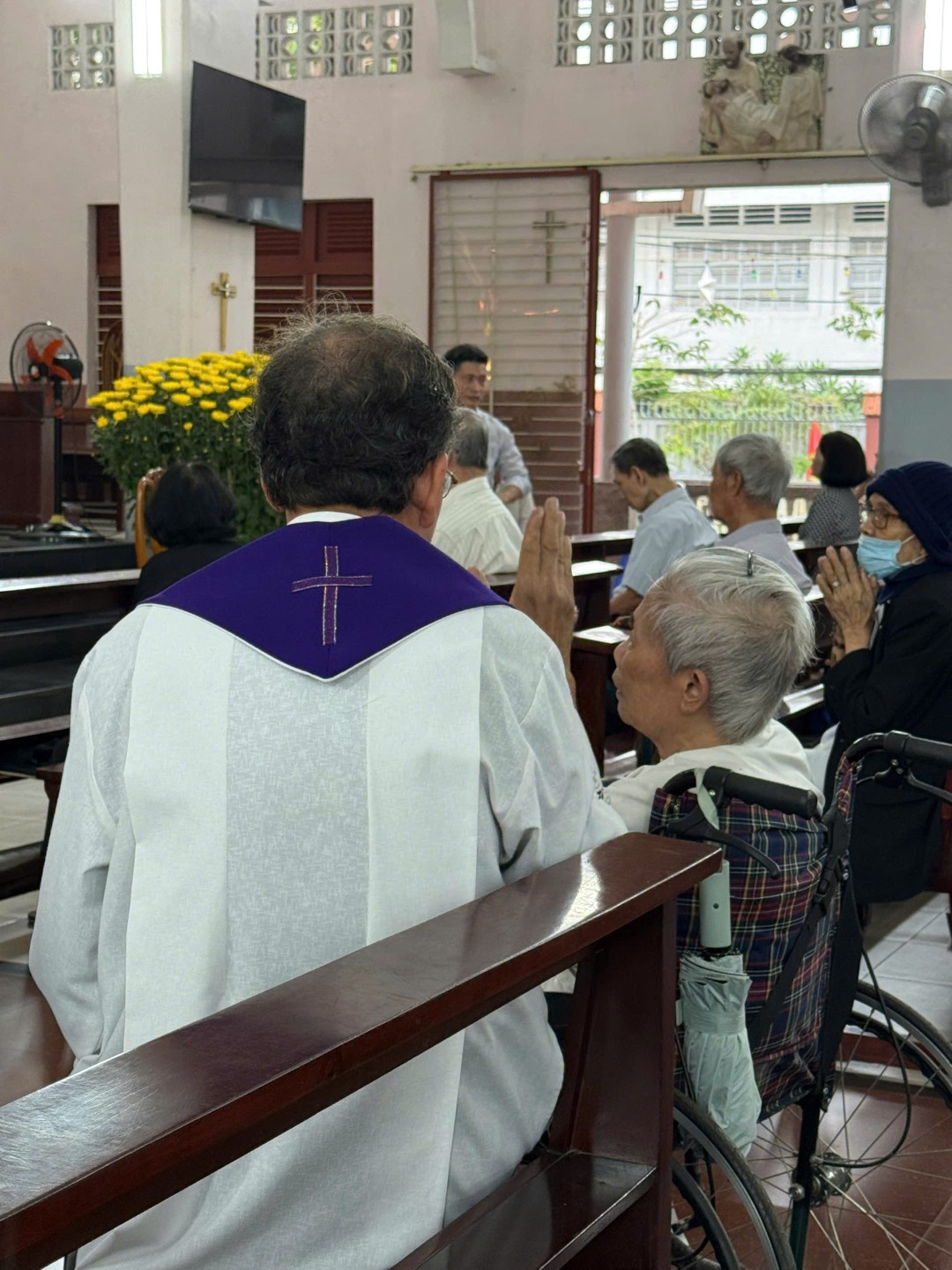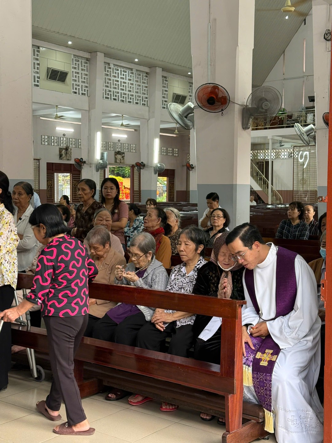 Tôi lặng người quan sát các linh mục. Các Ngài không ngồi chờ, mà đã ân cần đến tận nơi từng người ngồi xe lăn, từng cụ già yếu để ban Bí tích Giải Tội và Xức Dầu Bệnh nhân. Sự tận tụy đó cho tôi thấy một Giáo hội luôn cúi mình xuống với những nỗi đau.