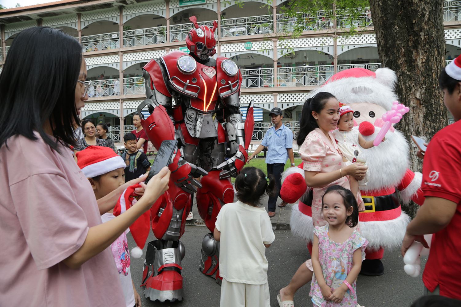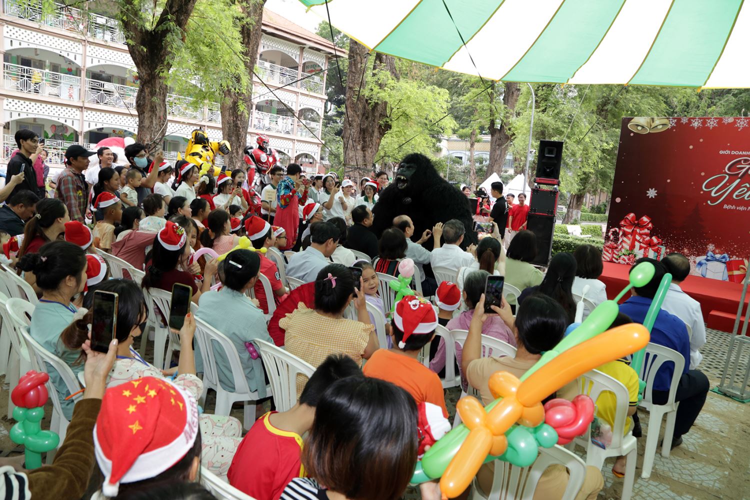 Bên cạnh đó là sự xuất hiện của các nhân vật trong trang phục ông già Noel, cô Tuyết mùa đông (MC Diễm Oanh), các siêu nhân, Tôn Ngộ Không, King Kong, chú hề… cùng nhiều trò chơi giao lưu. Sự thân thiện này giúp các em hòa vào bầu khí vui tươi, phấn khởi, quên đi phần nào sự mệt mỏi và đau bệnh.
