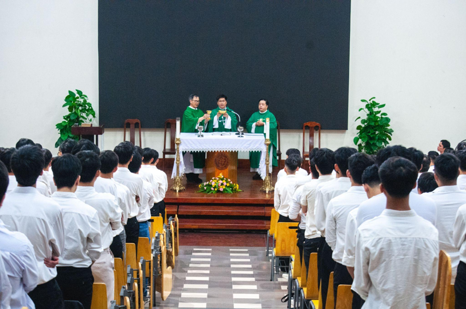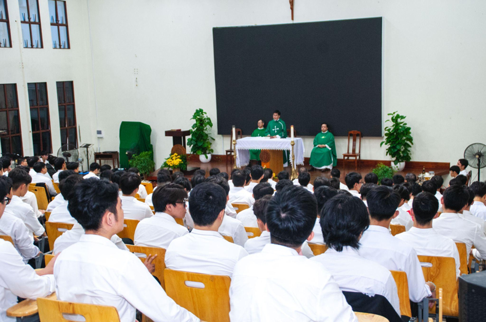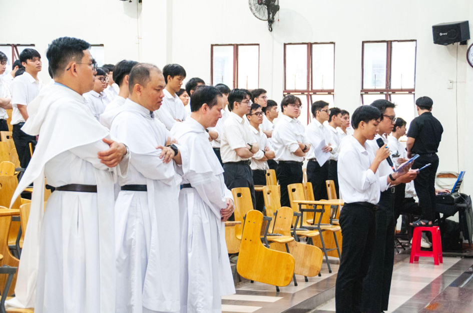 Đồng tế với ngài có linh mục Giuse Trần Vinh Hà, O.P. – Đặc trách Mục vụ Sinh viên Đa Minh; linh mục Antôn Phạm Ngọc Hưởng, O.P., cùng các linh mục Dòng Đa Minh, với sự tham dự của các thầy Dòng Đa Minh và khoảng 320 sinh viên thuộc Hệ thống Lưu học xá Đa Minh.