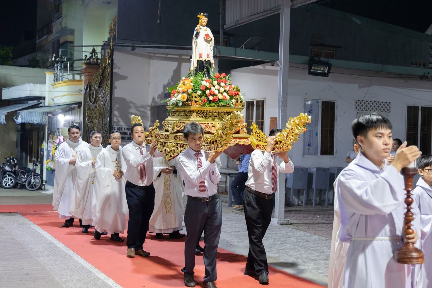 Khởi đầu Thánh lễ là cuộc rước kiệu trọng thể quanh khuôn viên nhà thờ. Đi đầu là Thánh giá nến cao, tiếp đến là các hội đoàn, cộng đoàn dân Chúa và kiệu tượng Thánh Phanxicô Xaviê. Đoàn rước vừa tiến bước vừa lắng nghe những nét chính trong cuộc đời rực sáng của vị Thánh đã dấn thân không mệt mỏi cho sứ mạng loan báo Tin Mừng.