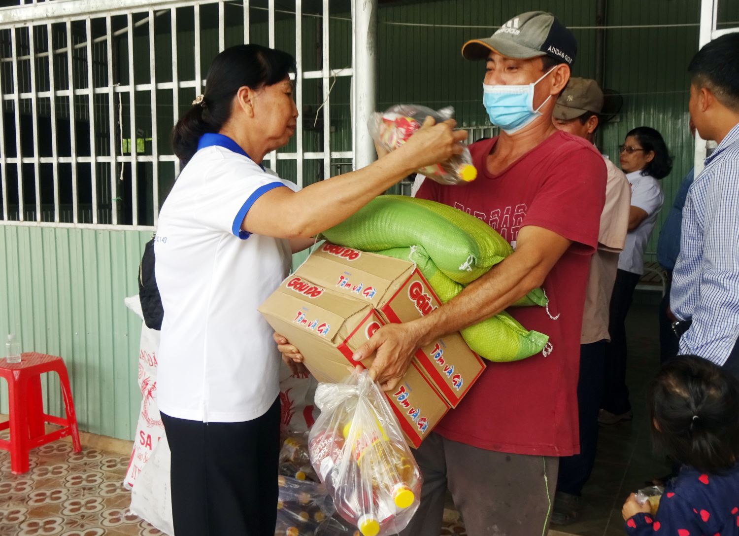 Đoàn bác ái phát tổng cộng 250 phần quà gồm gạo, mì và nhu yếu phẩm cho các hộ nghèo, 100 phần quà cho thiếu nhi, với hiện vật trị giá 125 triệu đồng và hiện kim 50 triệu đồng.