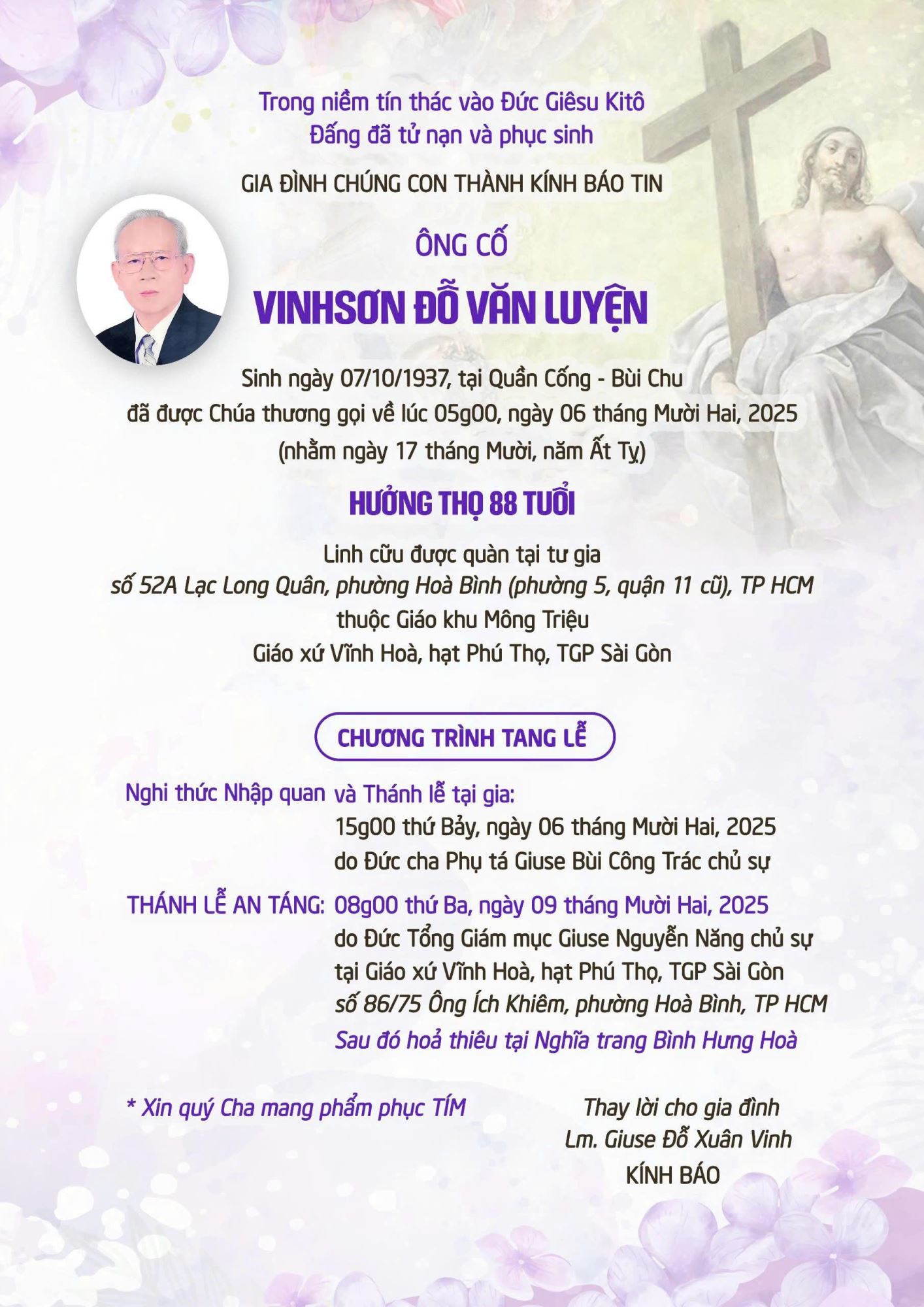 Cáo phó: Thân phụ của Lm Giuse Đỗ Xuân Vinh qua đời