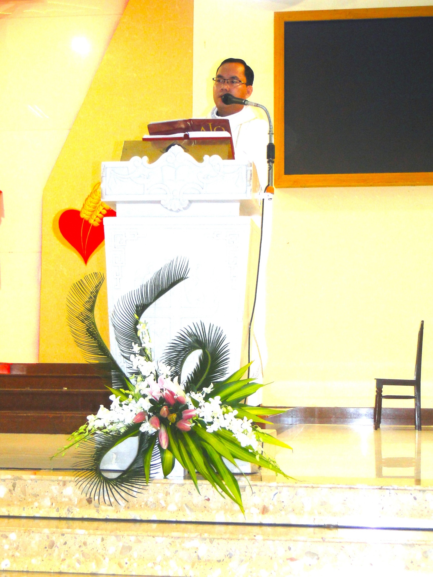 Sau Thánh lễ, Cha phó Giuse thay mặt Cha chánh xứ và toàn thể cộng đoàn chúc mừng ngày lễ bổn mạng của Ban BAXH - Caritas. Ngài nhắn nhủ: