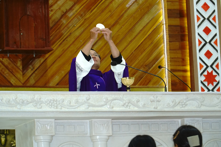 Kết thúc chương trình trao quà, vào lúc 18g00, mọi người cùng tham dự Thánh lễ do cha quản nhiệm Giuse chủ tế.