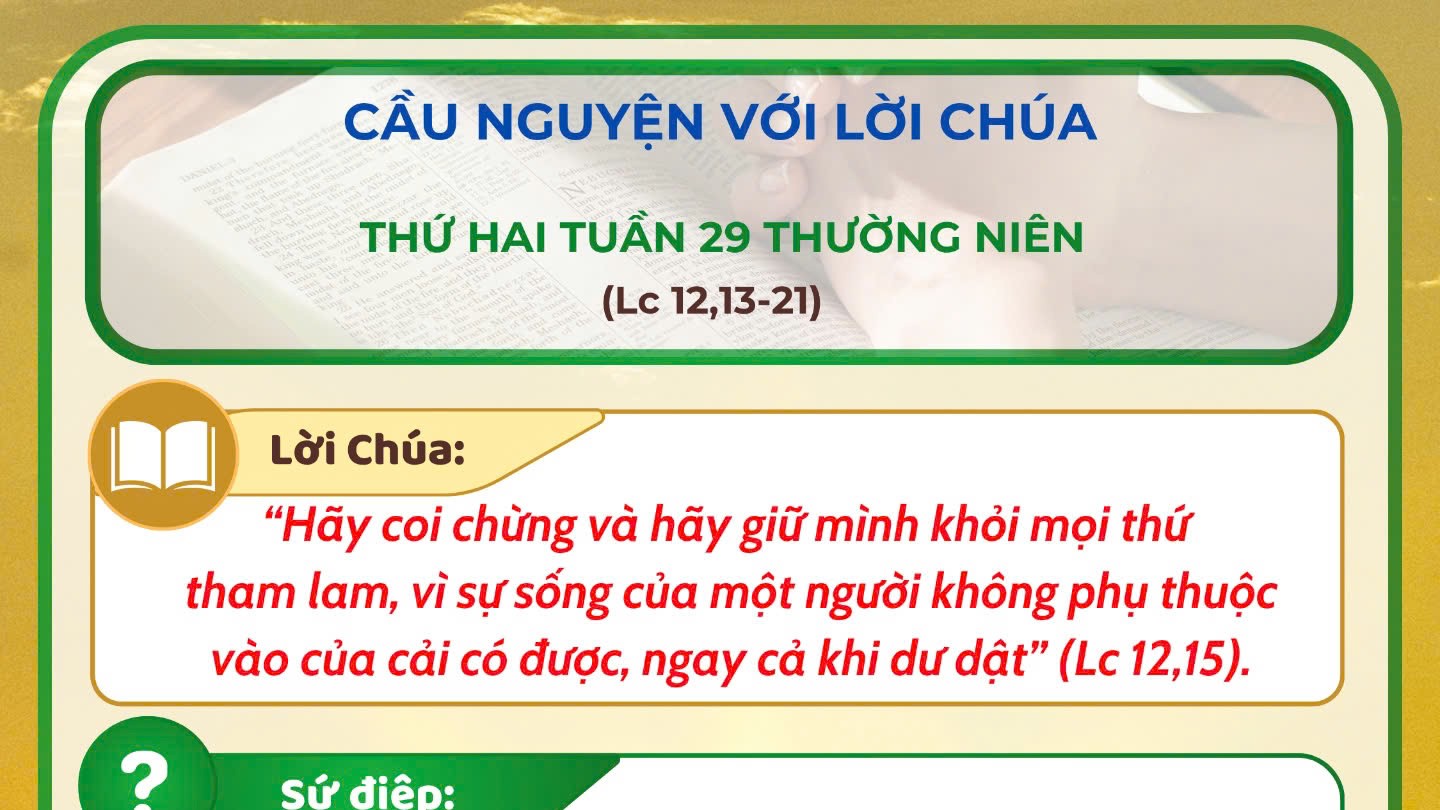 - Cầu nguyện với Lời Chúa: thứ Hai tuần 29 thường niên năm C