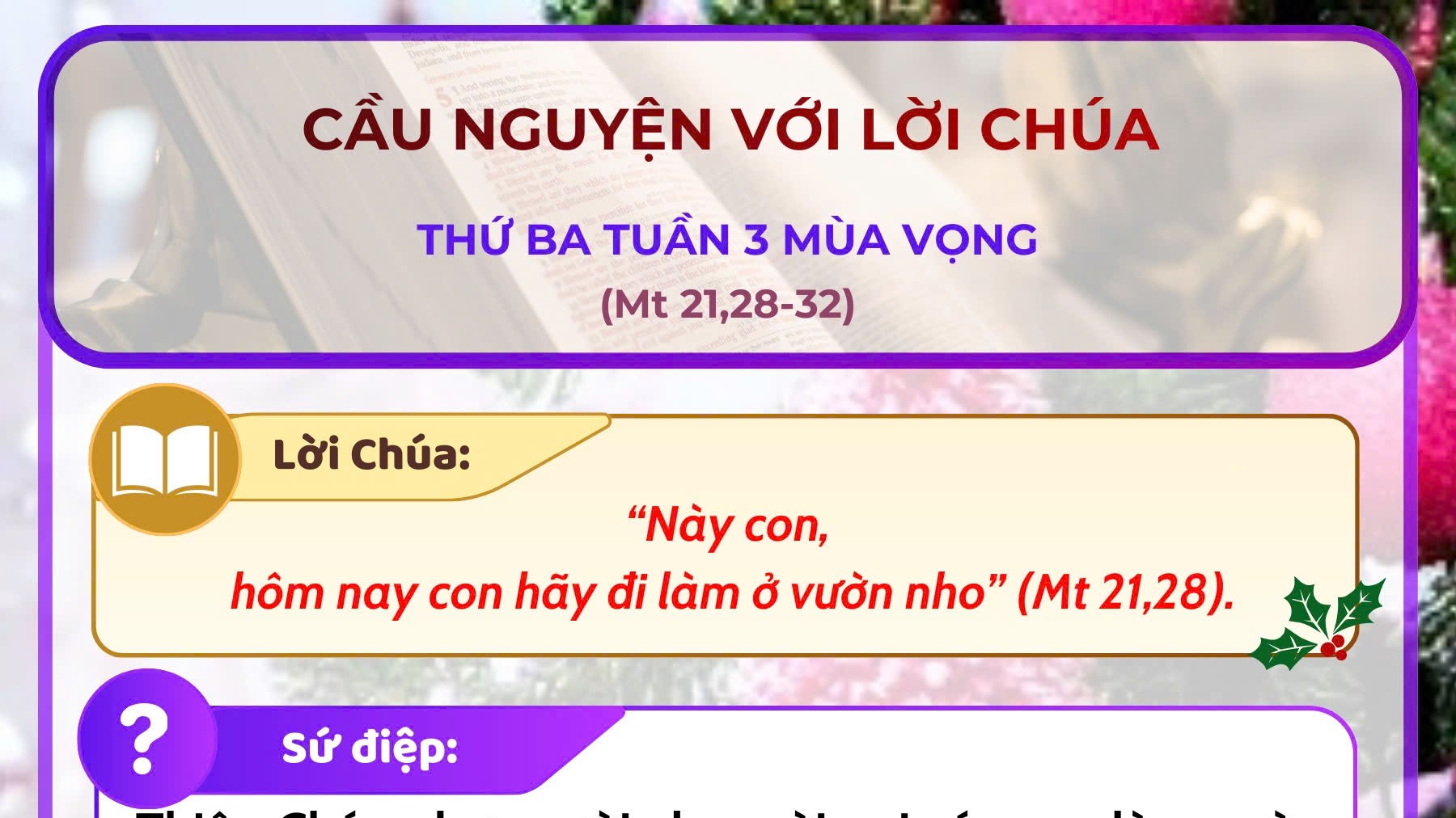- Cầu nguyện với Lời Chúa: thứ Ba tuần 3 Mùa vọng năm A
