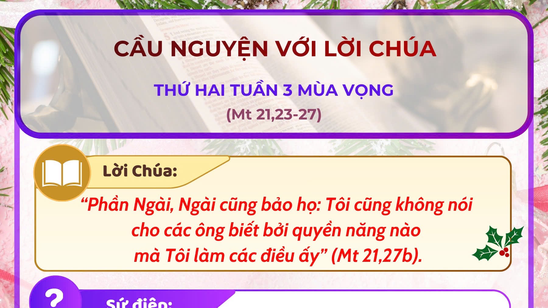 - Cầu nguyện với Lời Chúa: thứ Hai tuần 3 Mùa vọng năm A
