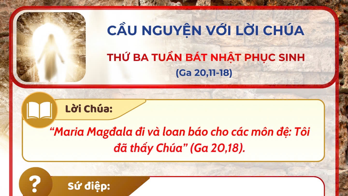 - Cầu nguyện với Lời Chúa: thứ Ba tuần Bát Nhật Phục Sinh năm A