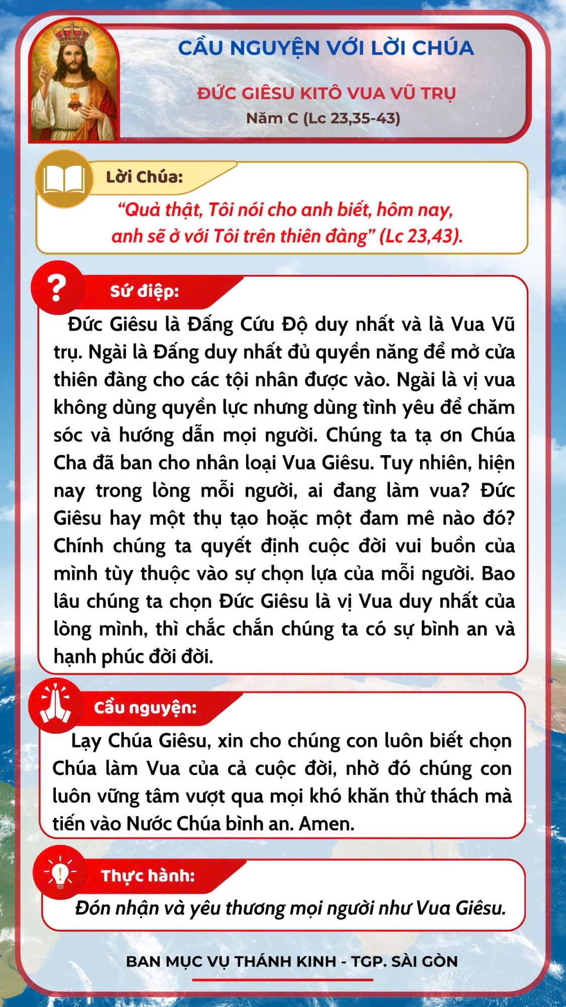 Cầu nguyện với Lời Chúa: Đức Giêsu Kitô Vua Vũ Trụ năm C