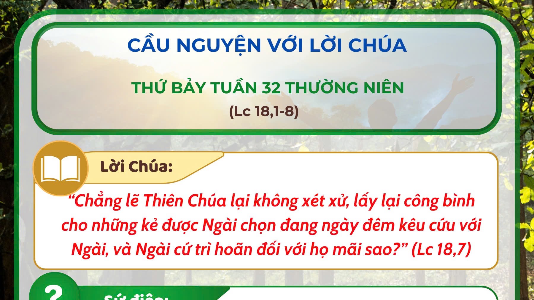 - Cầu nguyện với Lời Chúa: thứ Bảy tuần 32 thường niên năm C
