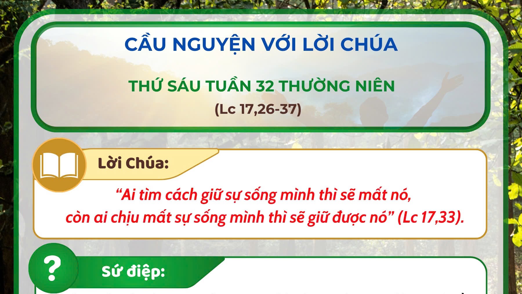 - Cầu nguyện với Lời Chúa: thứ Sáu tuần 32 thường niên năm C