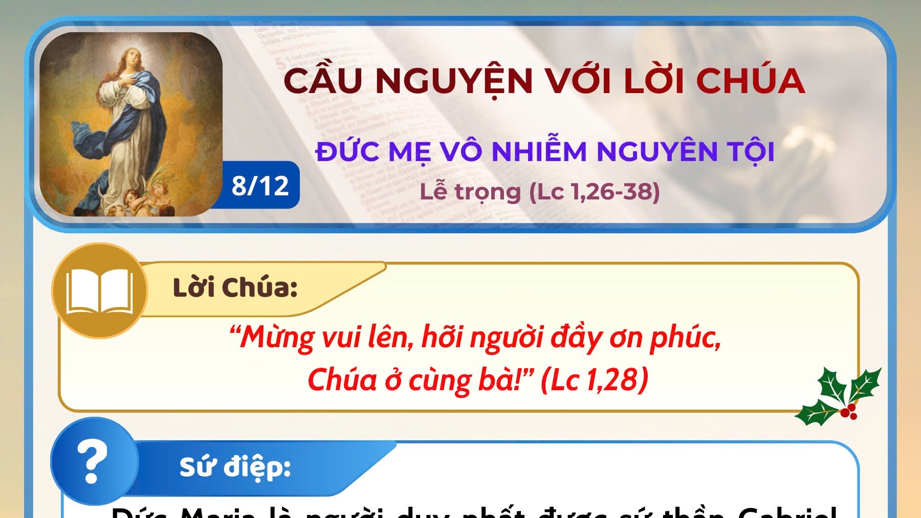 - Cầu nguyện với Lời Chúa: Đức Mẹ Vô Nhiễm Nguyên Tội