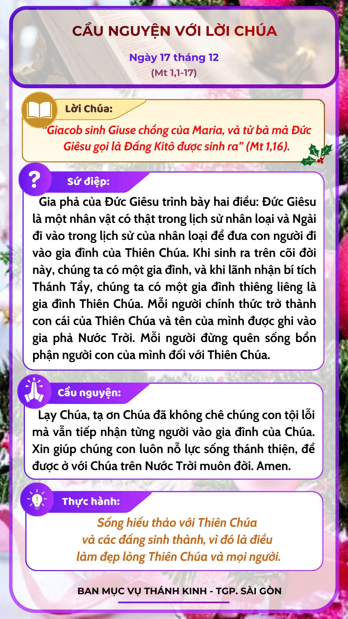Cầu nguyện với Lời Chúa: ngày 17 tháng 12