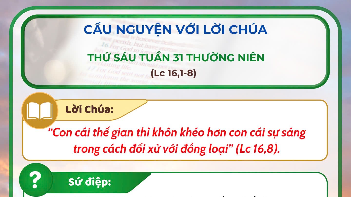 - Cầu nguyện với Lời Chúa: Thứ Sáu tuần 31 thường niên năm C