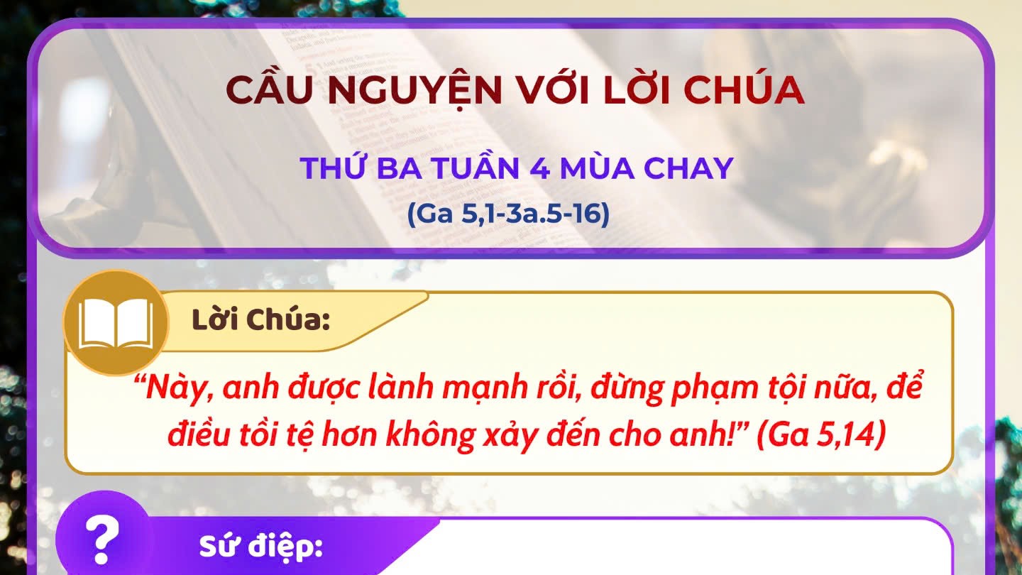 - Cầu nguyện với Lời Chúa: Thứ Ba tuần 4 Mùa Chay