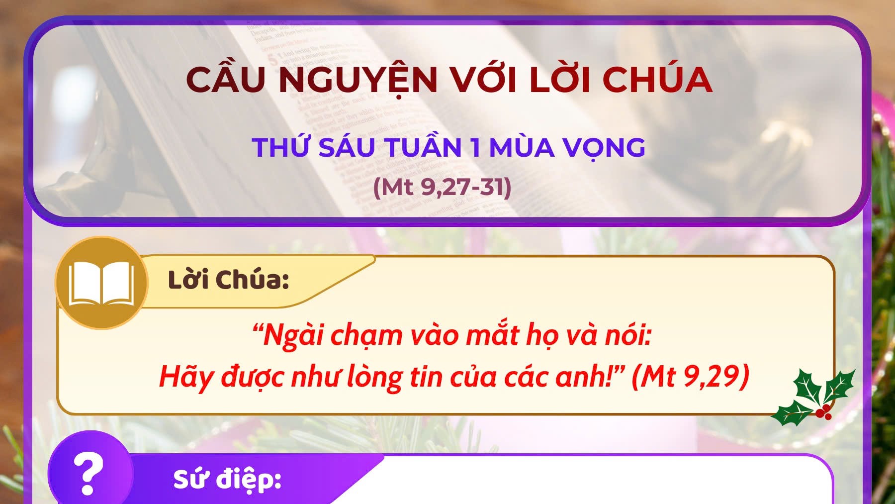 - Cầu nguyện với Lời Chúa: thứ Sáu tuần 1 Mùa Vọng Năm A