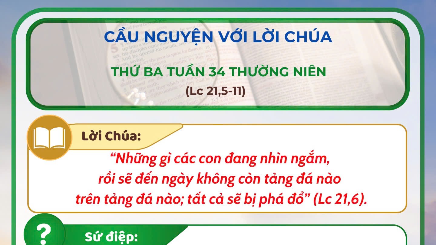 - Cầu nguyện với Lời Chúa: thứ Ba tuần 34 thường niên năm C