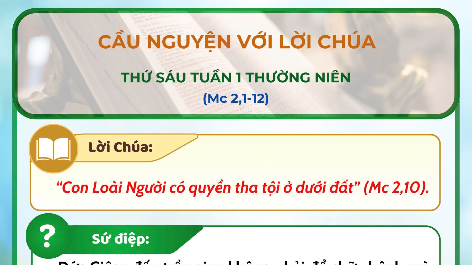 - Cầu nguyện với Lời Chúa: thứ Sáu tuần 1 thường niên năm A