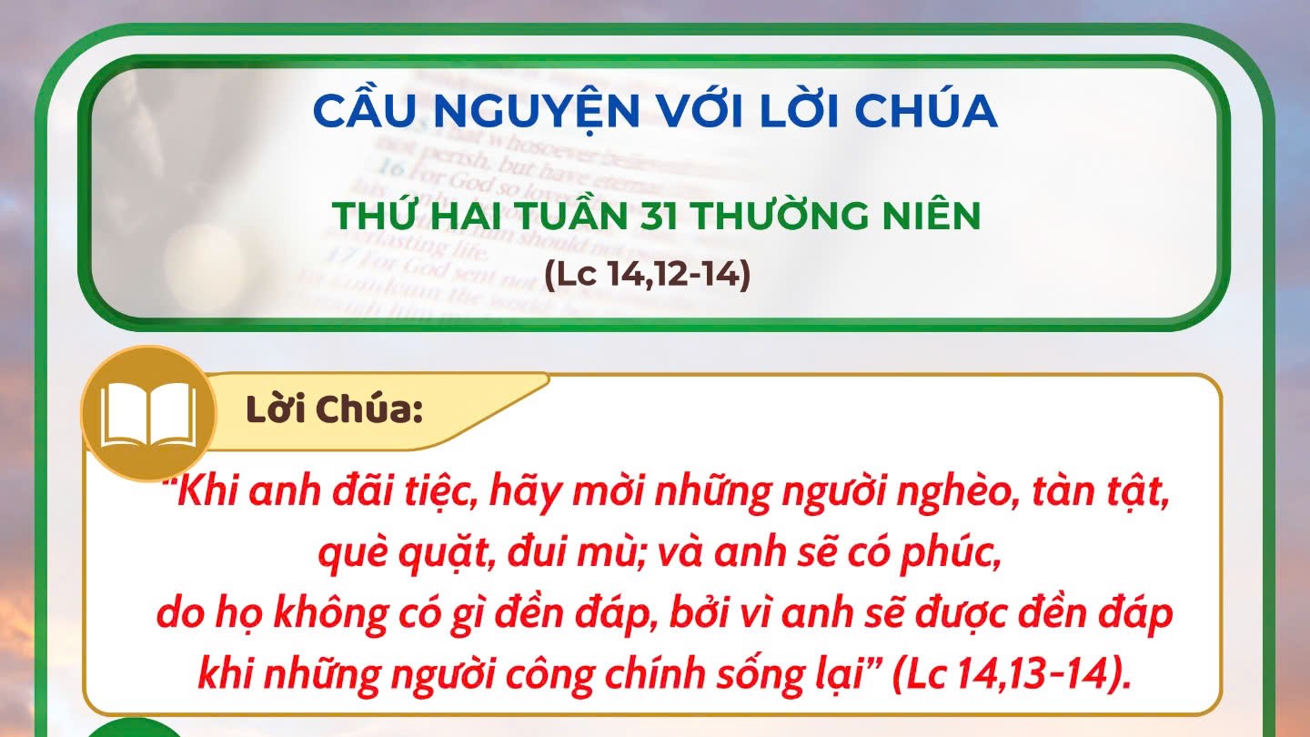 - Cầu nguyện với Lời Chúa: Thứ Hai tuần 31 thường niên năm C