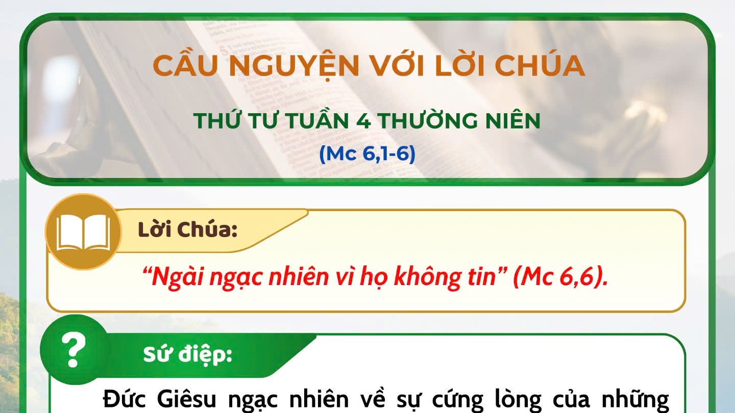 - Cầu nguyện với Lời Chúa: thứ Tư 4 Thường niên năm A