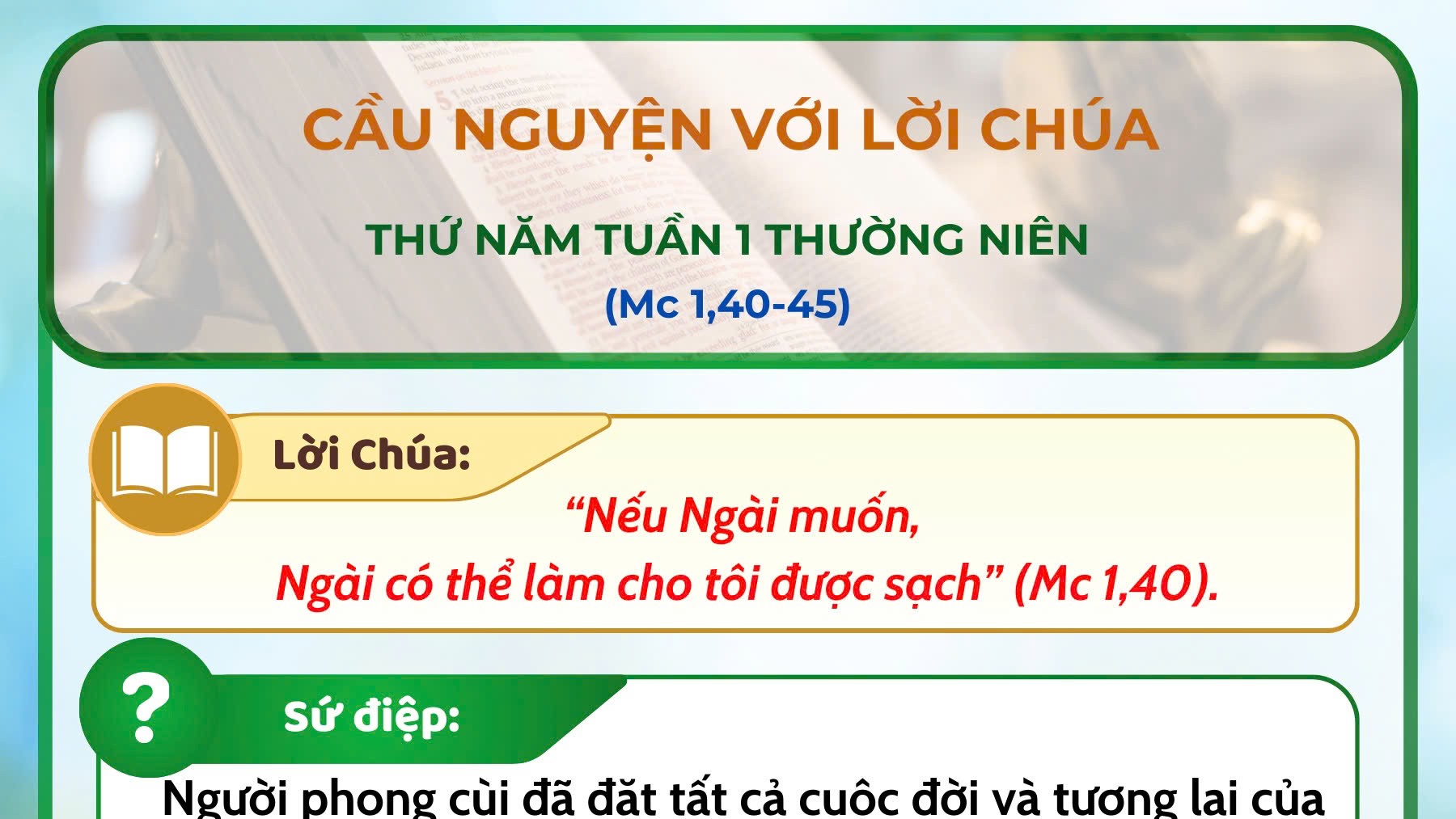 - Cầu nguyện với Lời Chúa: thứ Năm tuần 1 thường niên năm A
