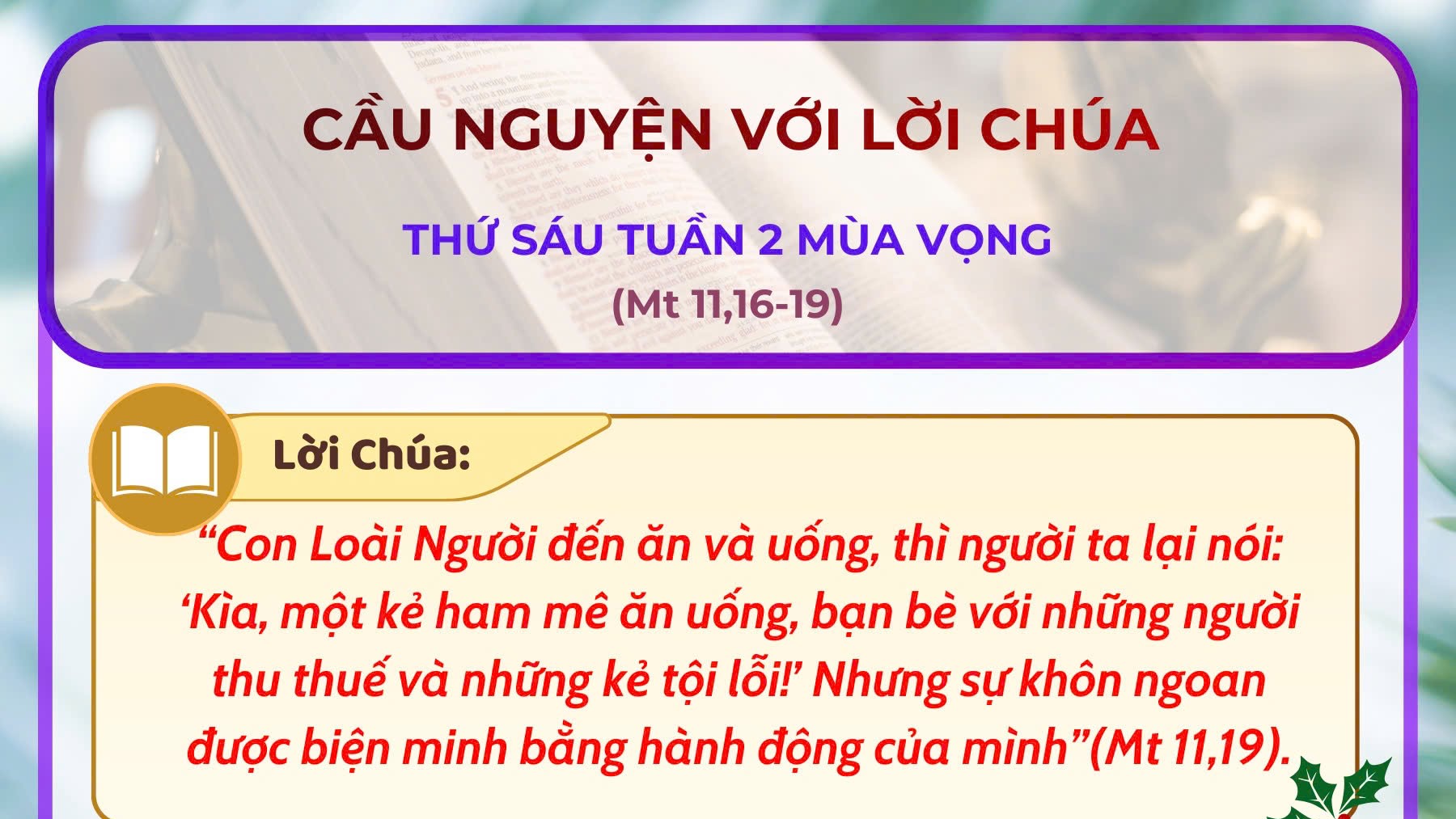 - Cầu nguyện với Lời Chúa: thứ Sáu tuần 2 Mùa vọng năm A