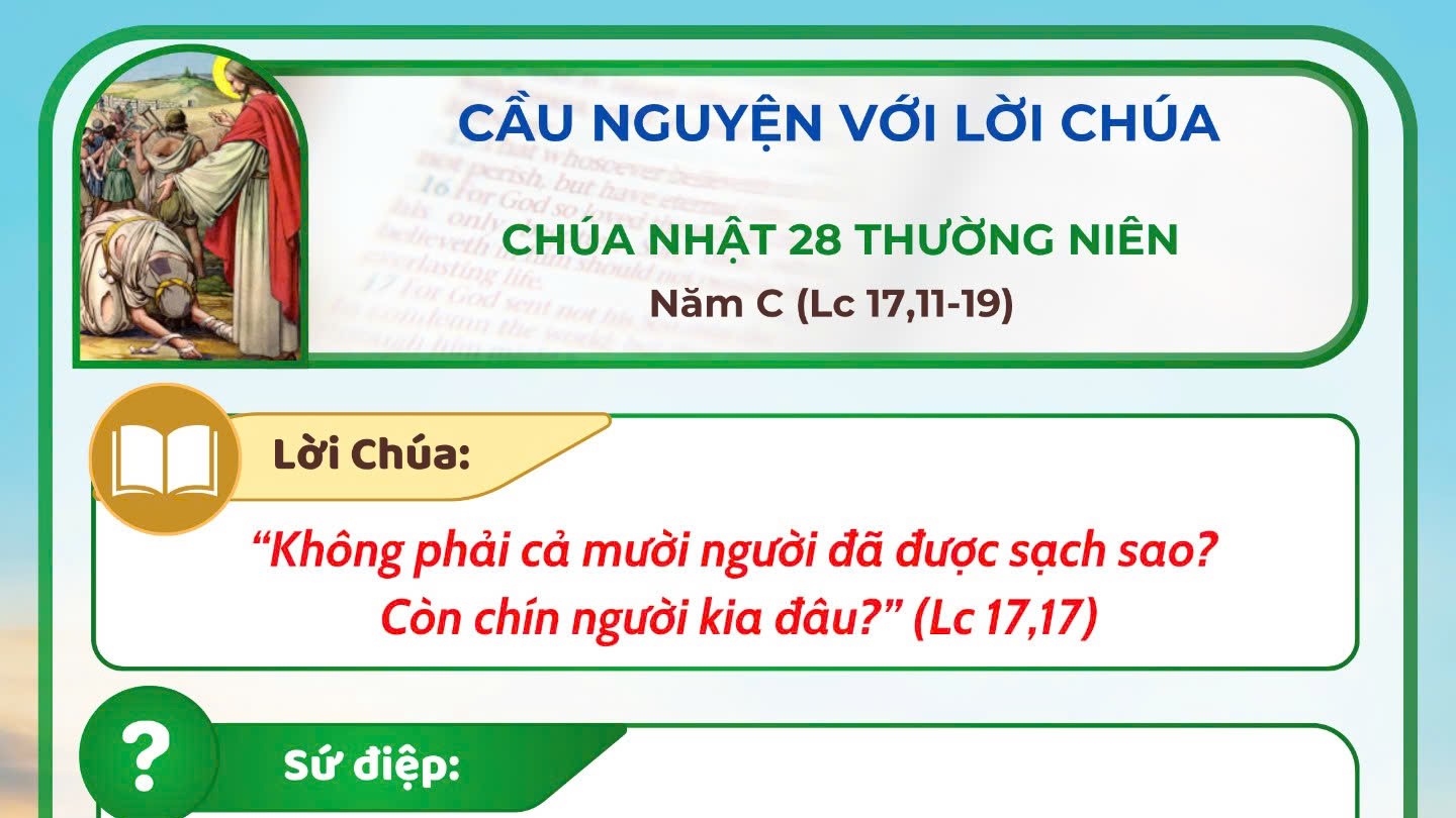 - Cầu nguyện với Lời Chúa: Chúa Nhật tuần 28 thường niên năm C