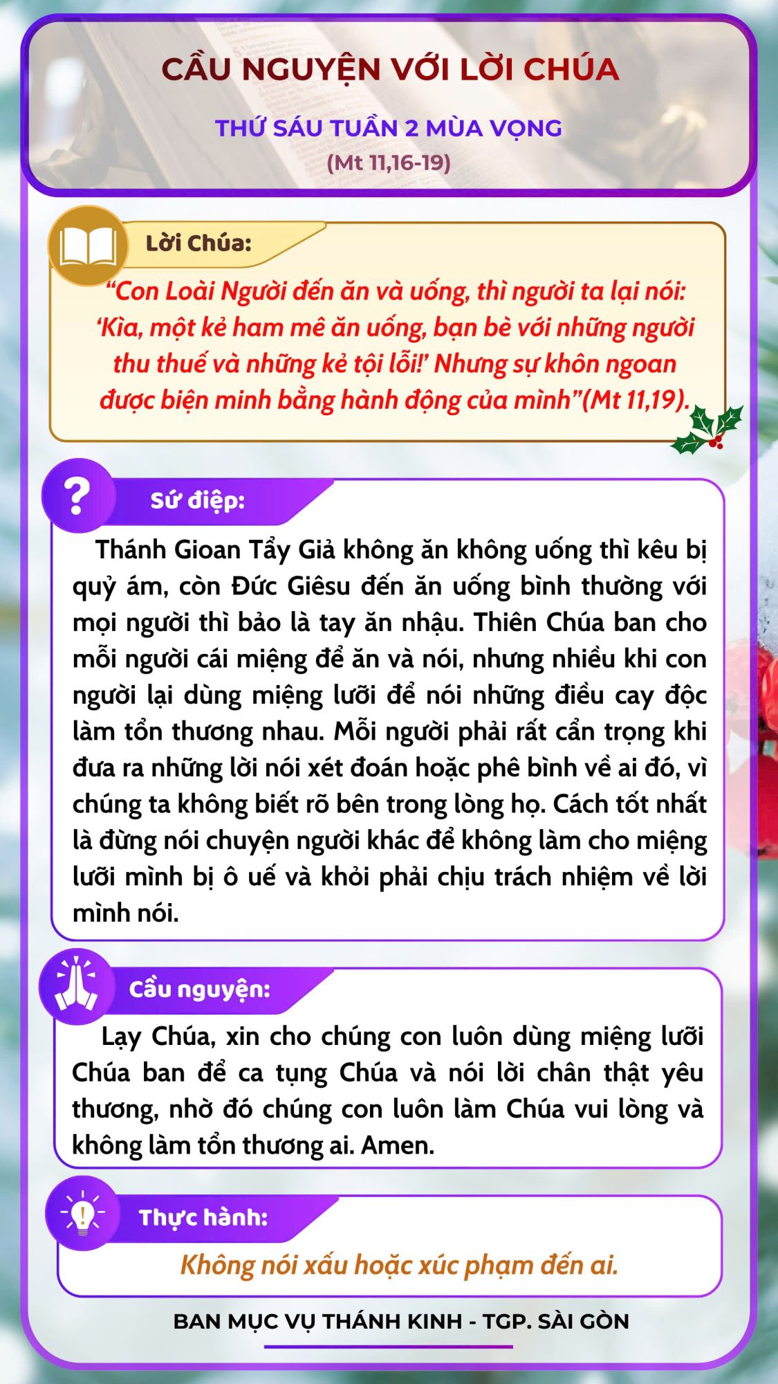 - Cầu nguyện với Lời Chúa: thứ Bảy tuần 2 Mùa vọng năm A