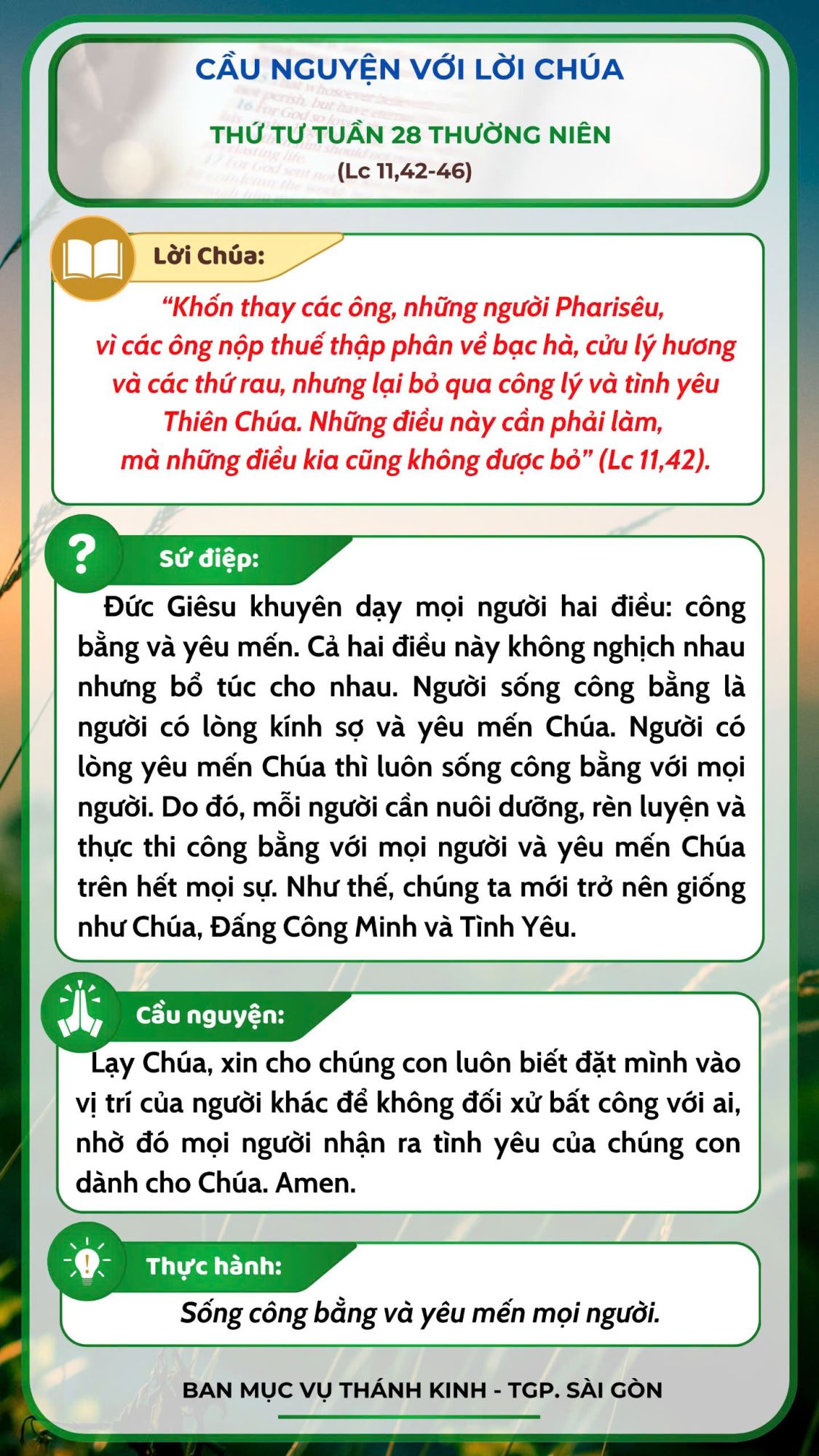 - Cầu nguyện với Lời Chúa: thứ Ba tuần 28 thường niên năm C