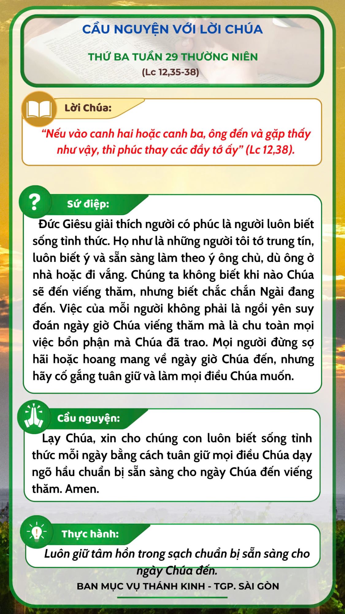 Cầu nguyện với Lời Chúa: thứ Ba tuần 28 thường niên năm C -