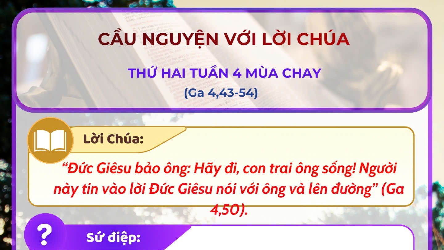 - Cầu nguyện với Lời Chúa: Thứ Hai tuần 4 Mùa Chay