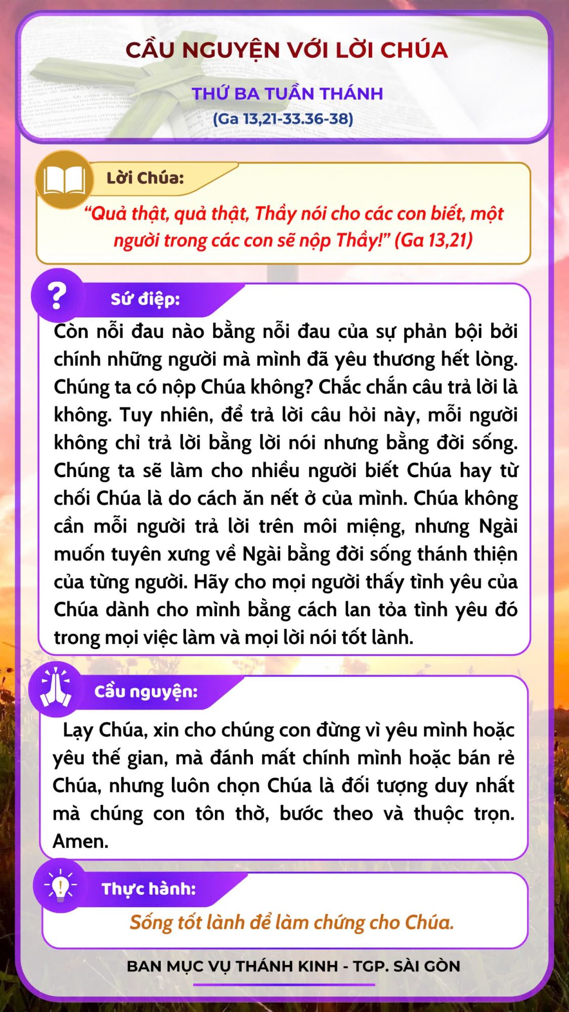 Cầu nguyện với Lời Chúa: thứ Ba tuần Thánh năm A
