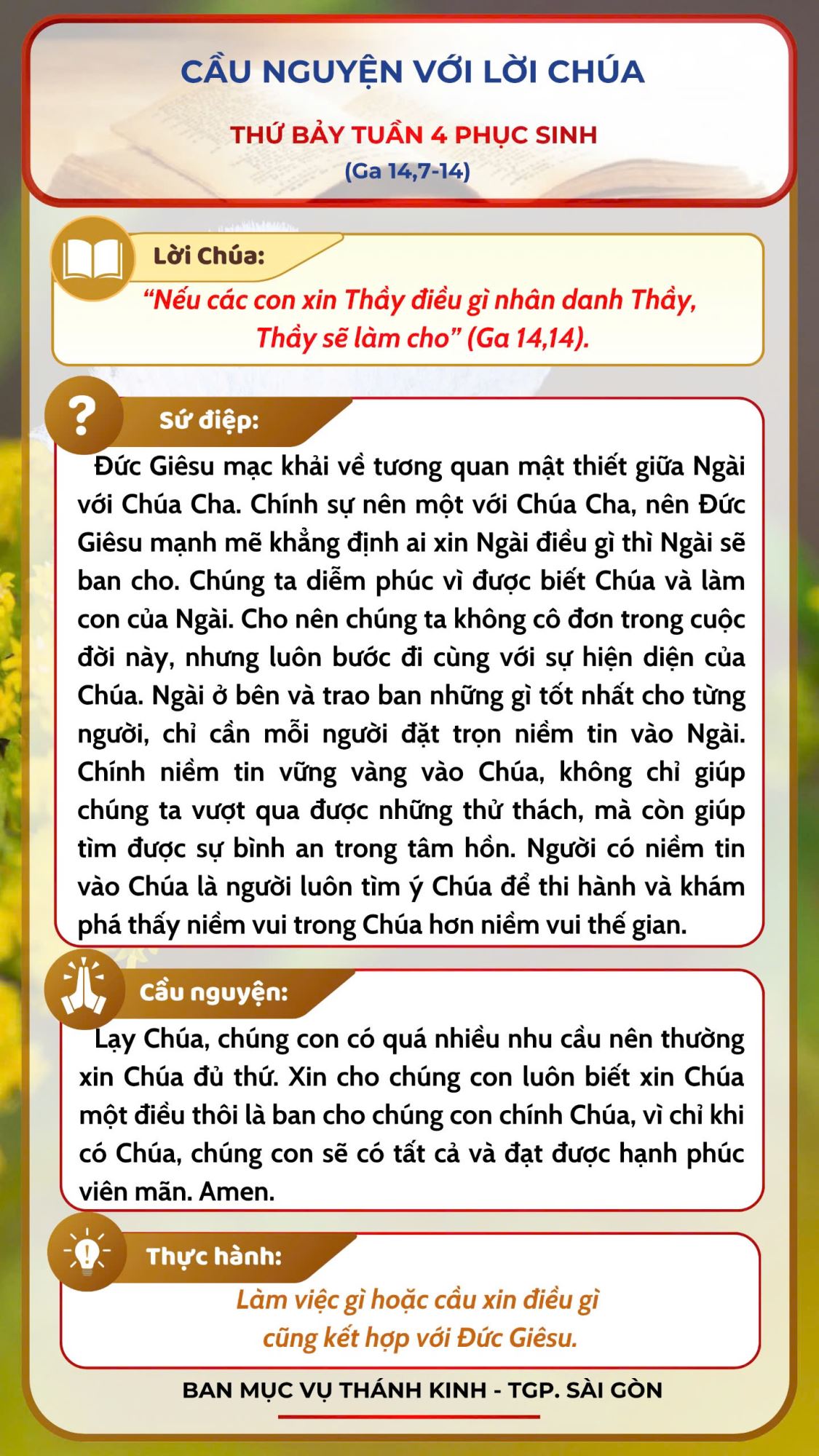 Cầu nguyện với Lời Chúa: Thứ Bảy tuần 4 Phục Sinh năm A