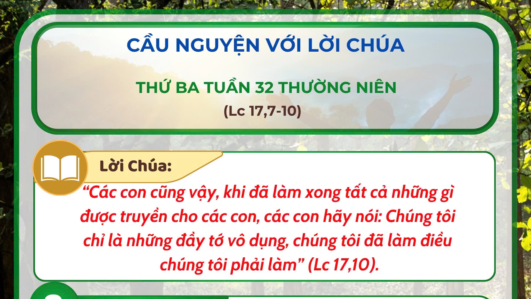 - Cầu nguyện với Lời Chúa: thứ Ba tuần 32 thường niên năm C
