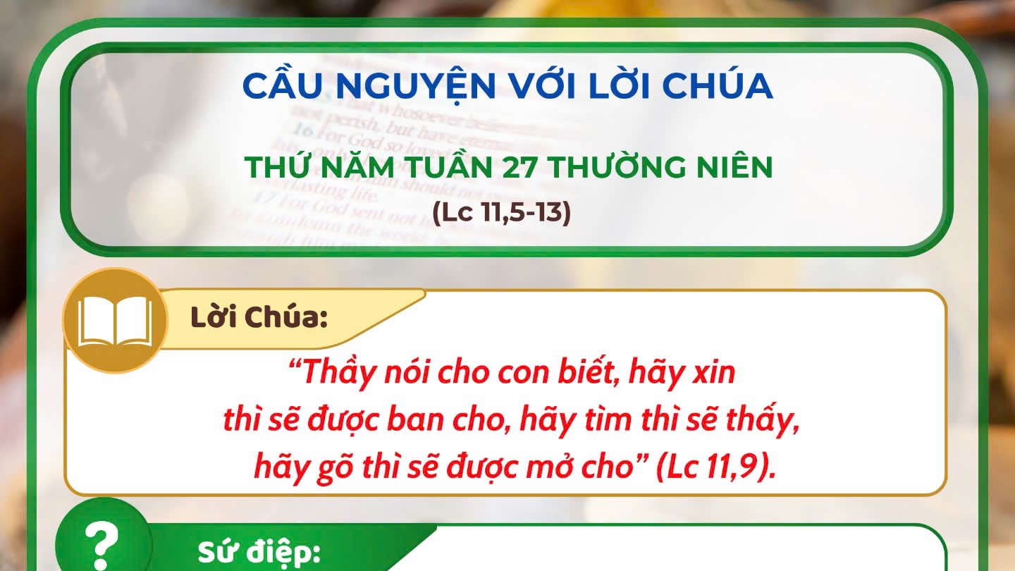 - Cầu nguyện với Lời Chúa: thứ Năm tuần 27 thường niên năm C