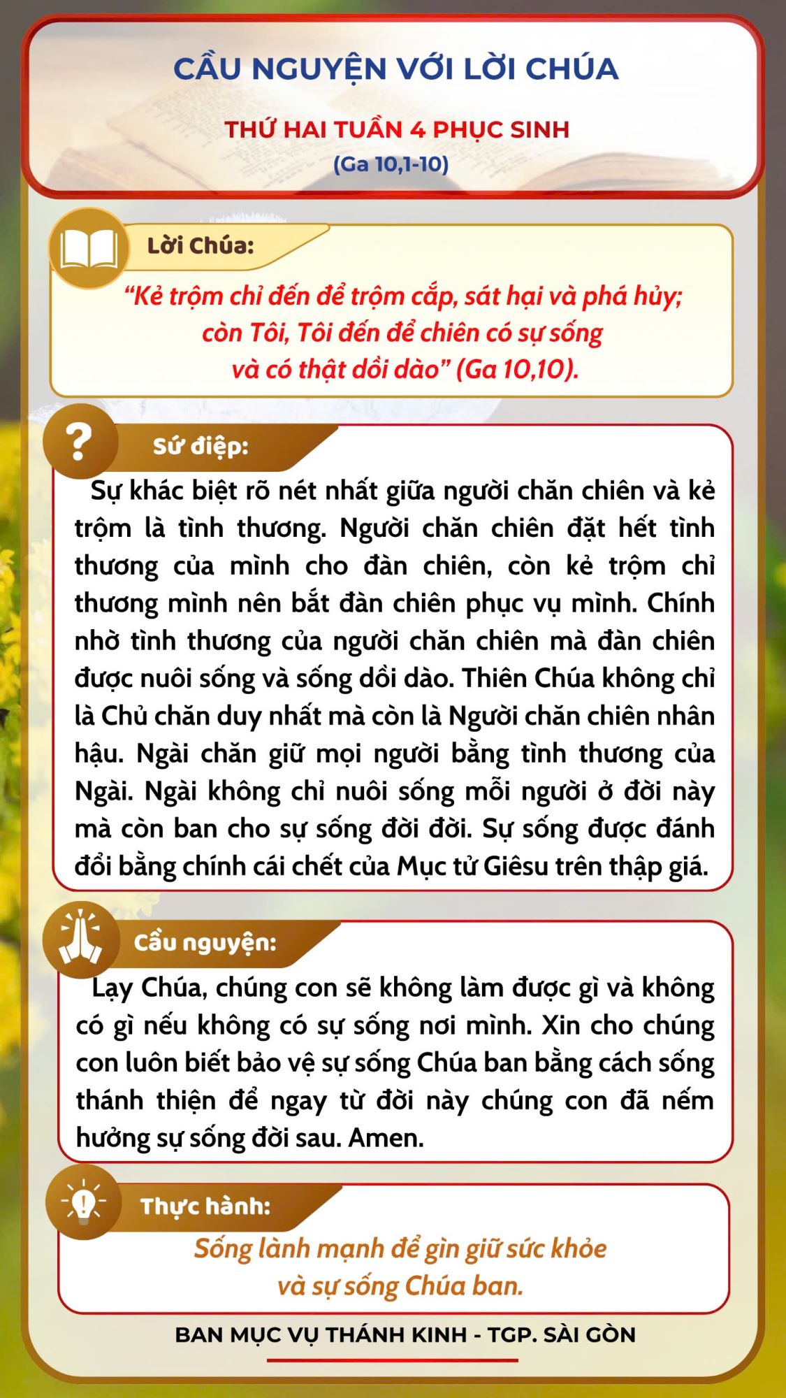 - Cầu nguyện với Lời Chúa: Chúa Nhật tuần 4 Phục Sinh năm A