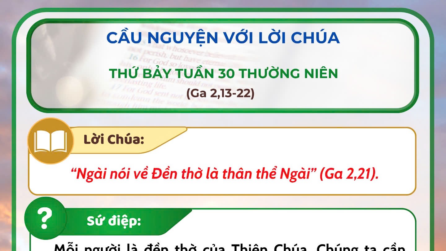 - Cầu nguyện với Lời Chúa: Thứ Bảy tuần 31 thường niên năm C