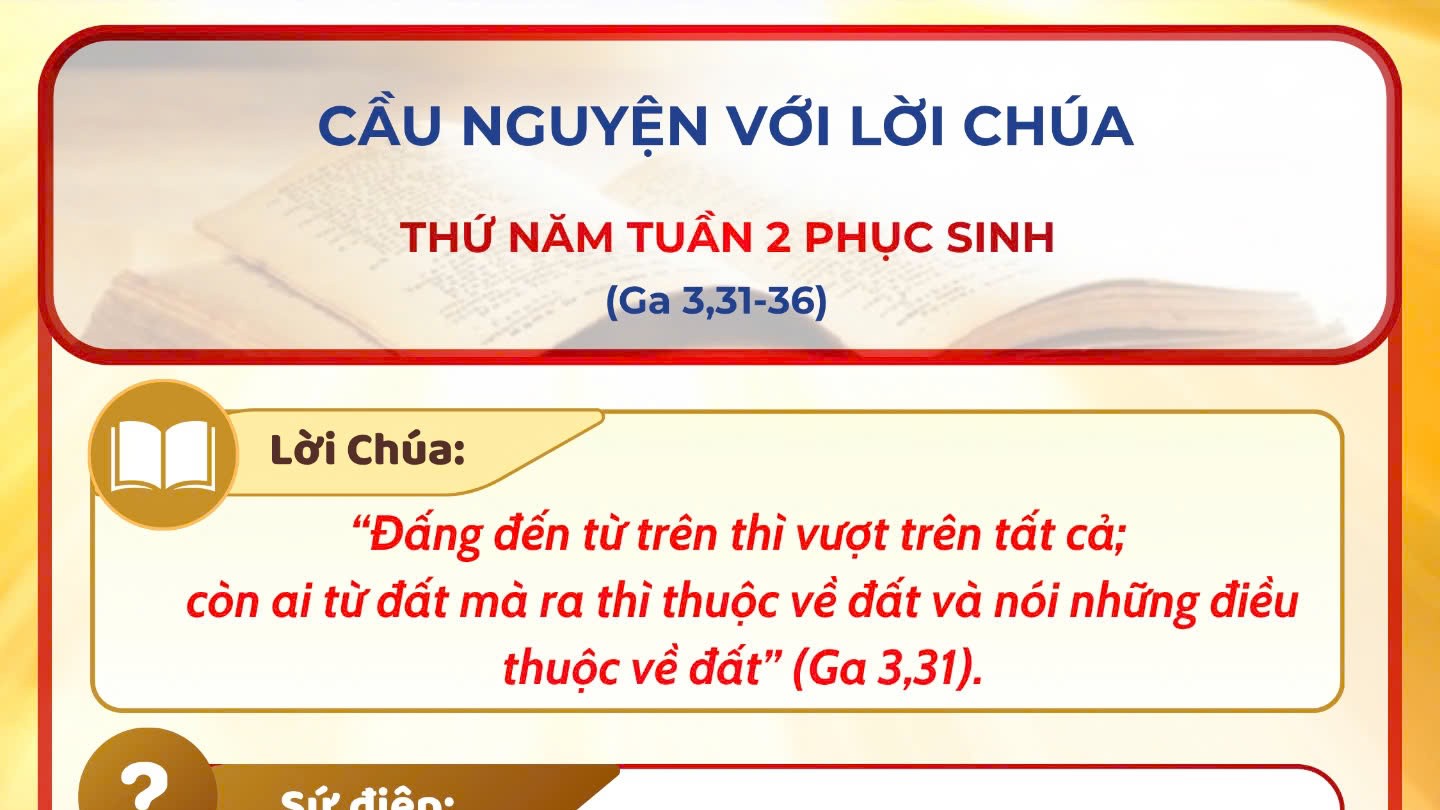 - Cầu nguyện với Lời Chúa: Thứ Năm tuần 2 Phục Sinh năm A
