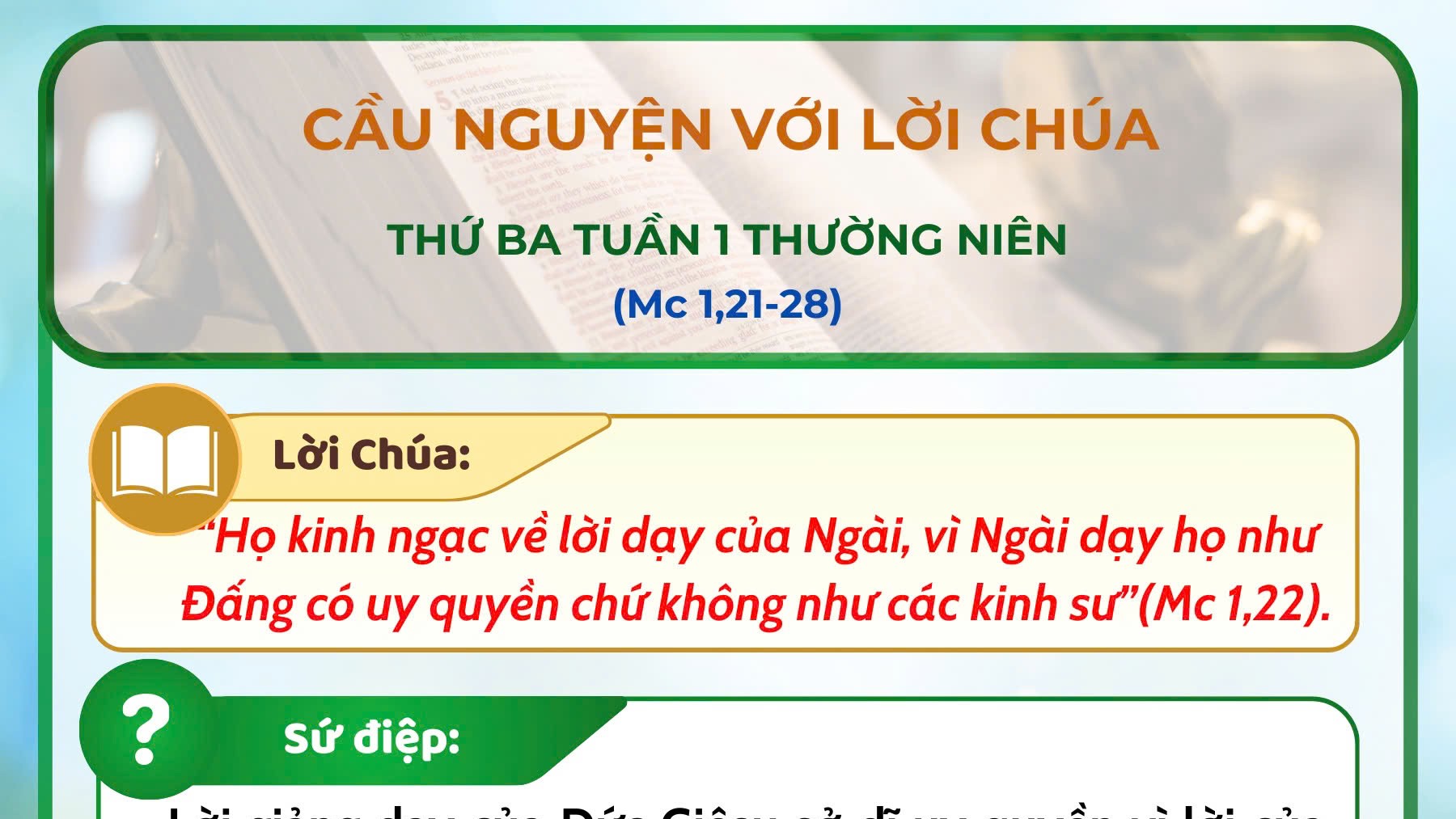 - Cầu nguyện với Lời Chúa: thứ Ba tuần 1 thường niên năm A