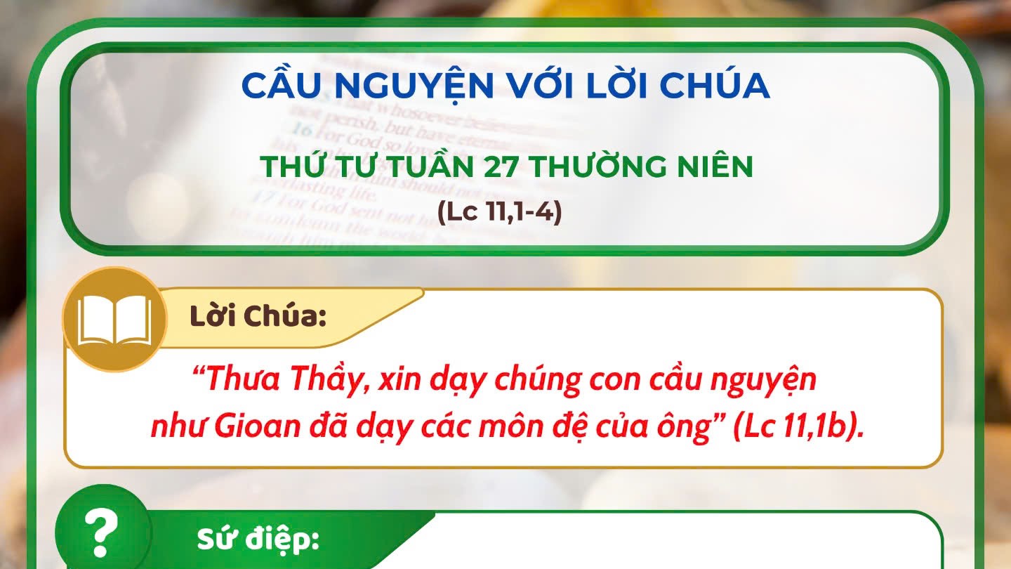 - Cầu nguyện với Lời Chúa: thứ Tư tuần 27 thường niên năm C