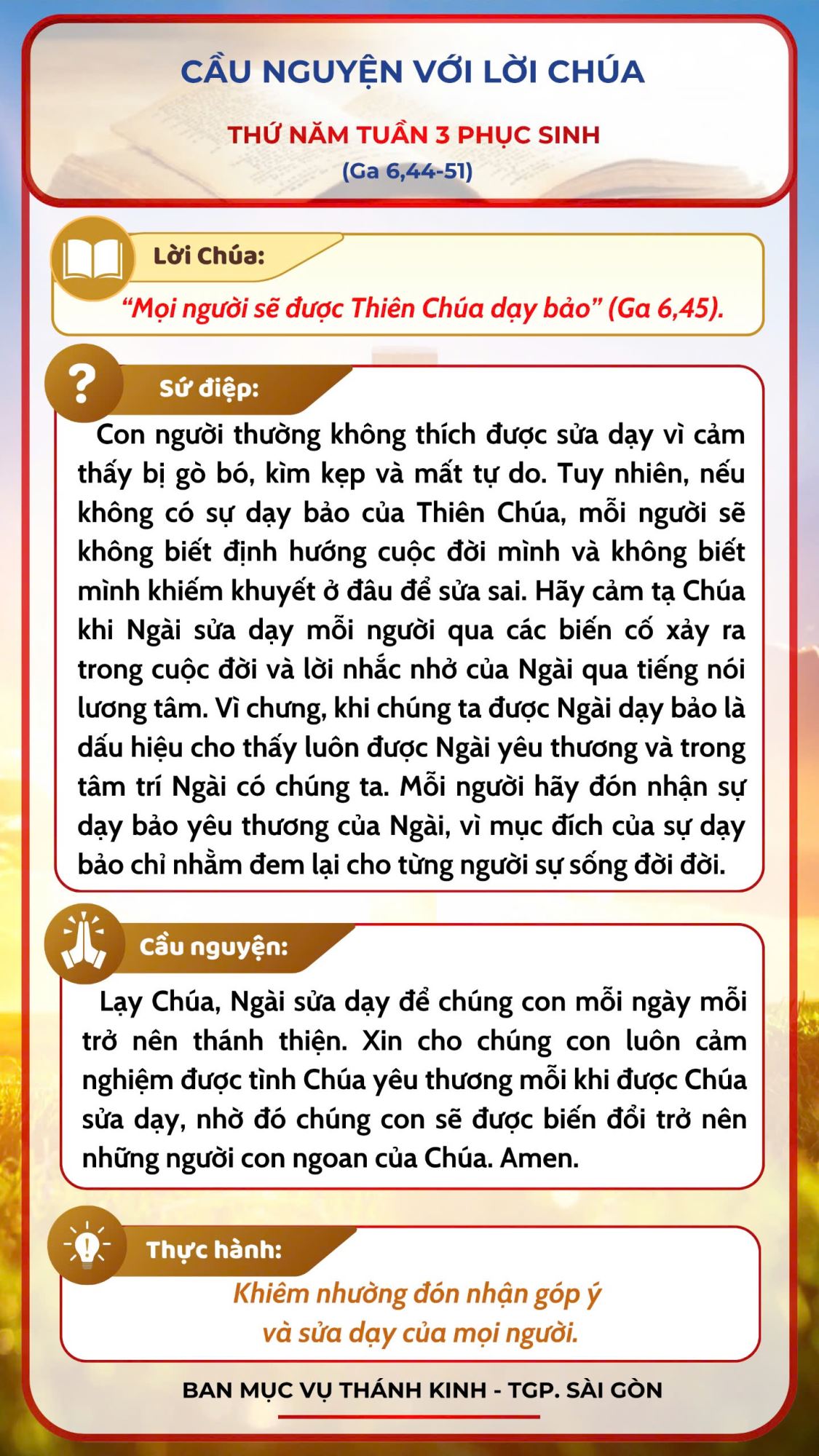 - Cầu nguyện với Lời Chúa: thứ Tư tuần 3 Phục Sinh năm A