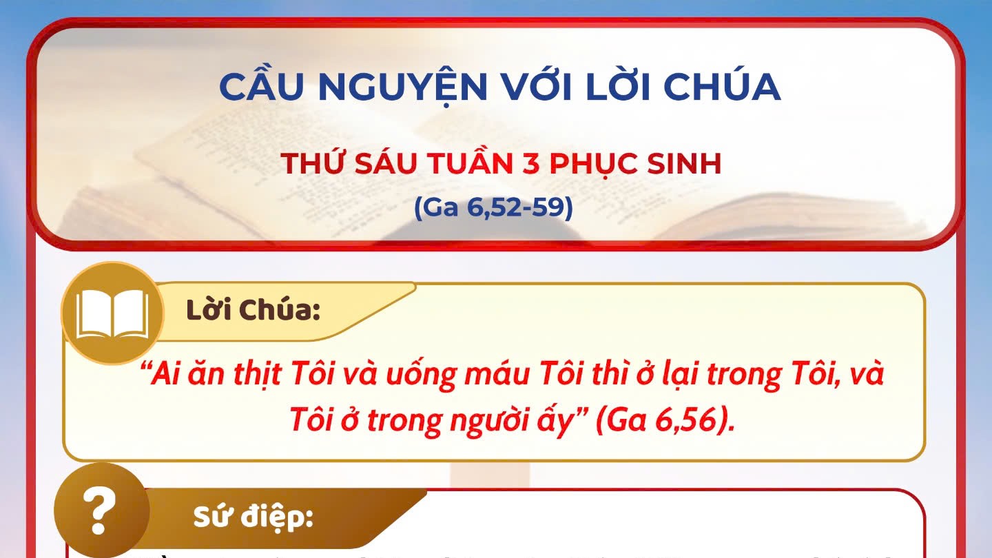 - Cầu nguyện với Lời Chúa: thứ Sáu tuần 3 Phục Sinh năm A