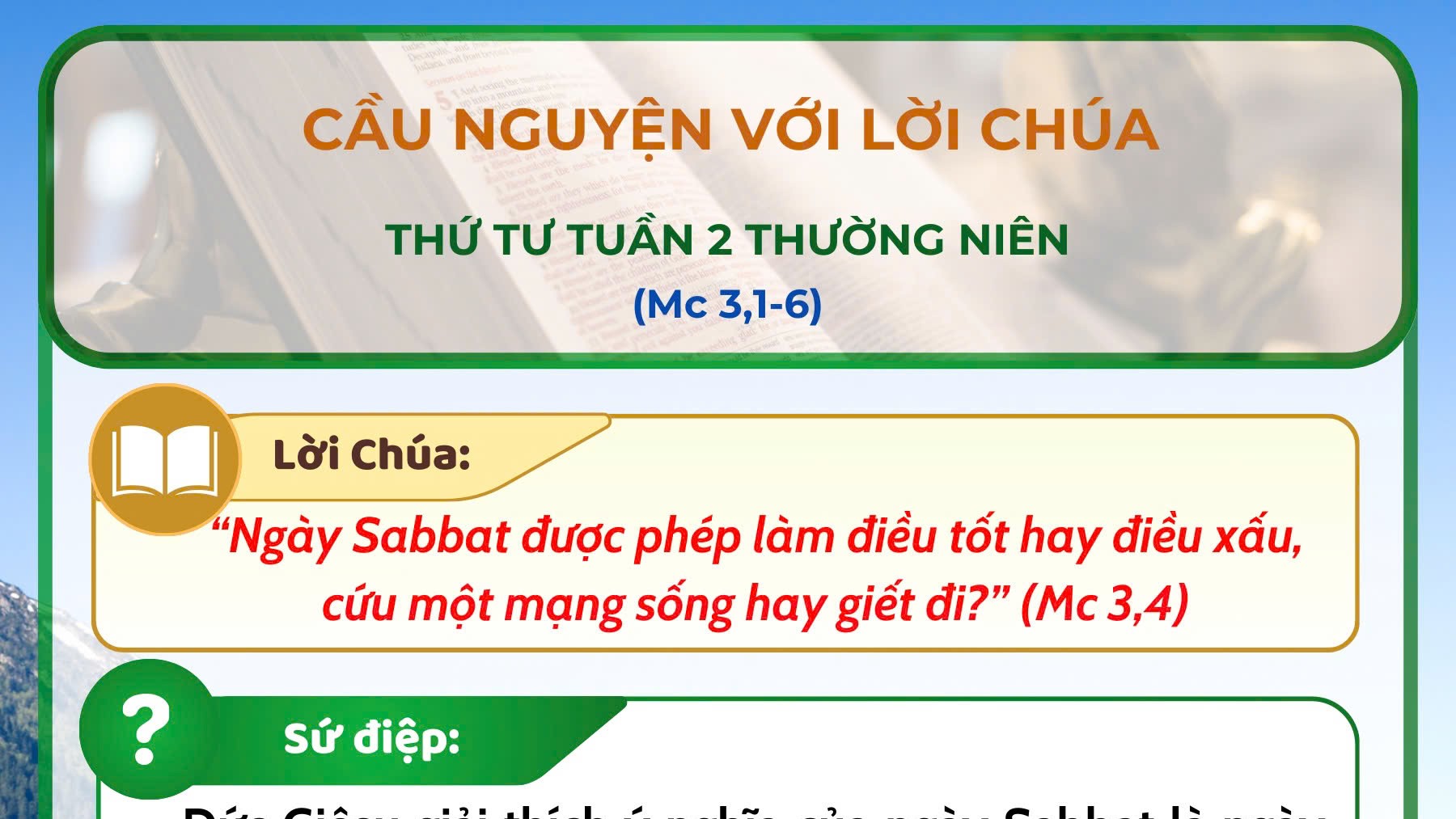 - Cầu nguyện với Lời Chúa: thứ Tư tuần 2 thường niên năm A