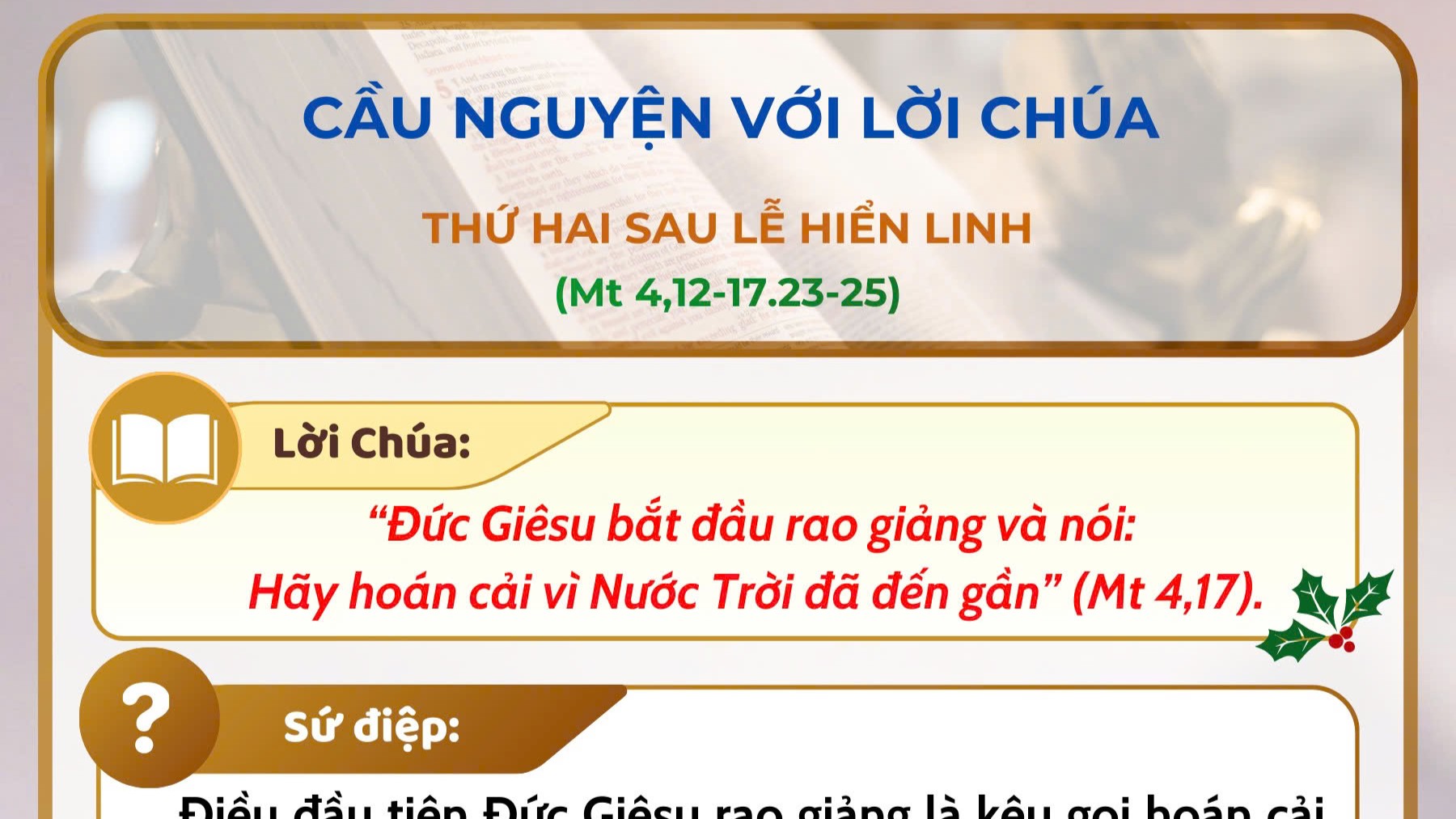 - Cầu nguyện với Lời Chúa: thứ Ba sau lễ Hiển Linh năm A