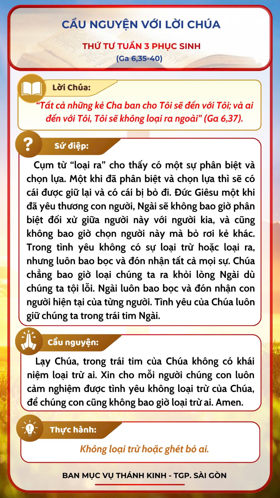 - Cầu nguyện với Lời Chúa: thứ Ba tuần 3 Phục Sinh năm A