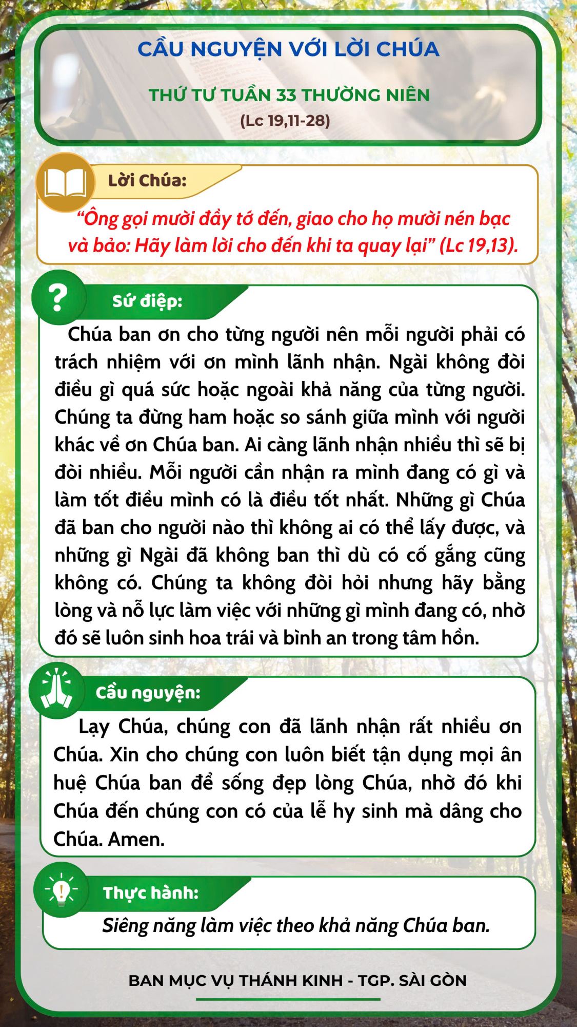 Cầu nguyện với Lời Chúa: thứ Tư tuần 33 thường niên năm C