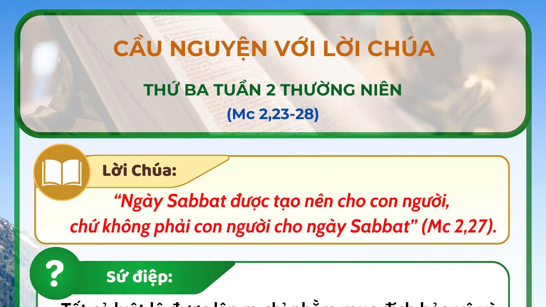 - Cầu nguyện với Lời Chúa: thứ Ba tuần 2 thường niên năm A