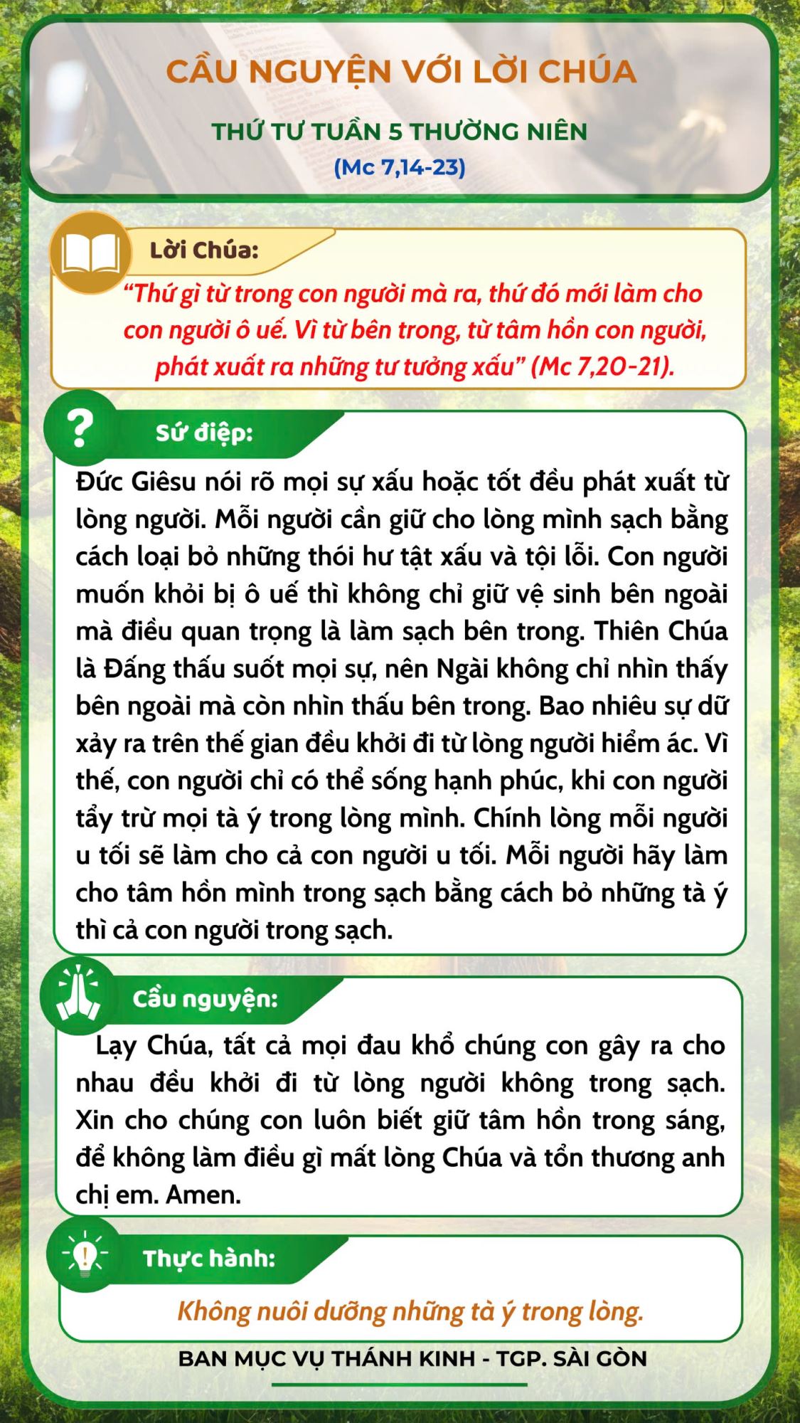 - Cầu nguyện với Lời Chúa: thứ Ba tuần 5 thường niên năm A