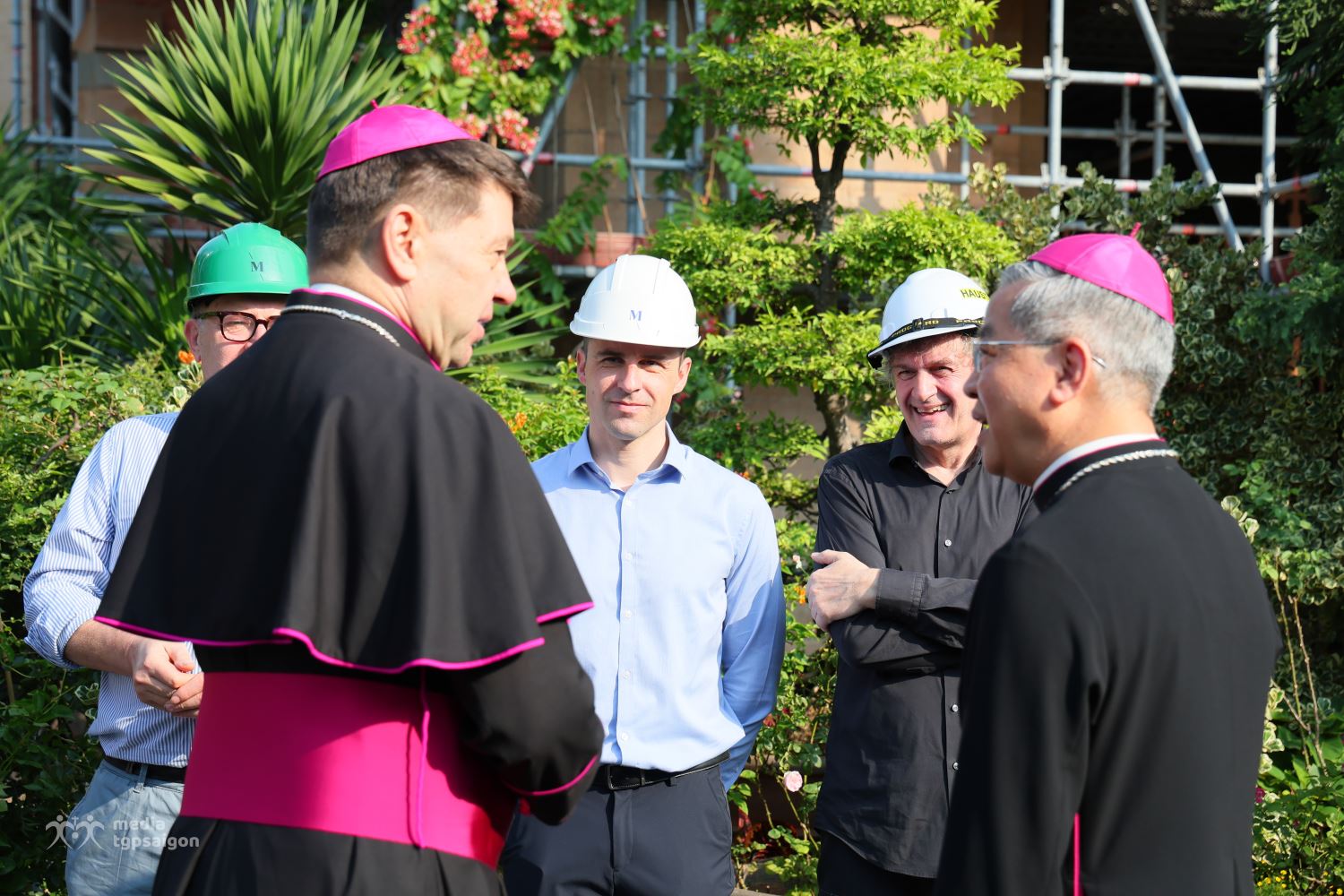 Trong phần đón tiếp, linh mục Inhaxiô Hồ Văn Xuân, Trưởng Ban Trùng tu đã có lời chào đón và tri ân Đức Tổng Giám mục Marek Zalewski, Đức Tổng Giám mục Giuse Nguyễn Năng, các chuyên gia, kỹ sư, công nhân, phóng viên báo chí.